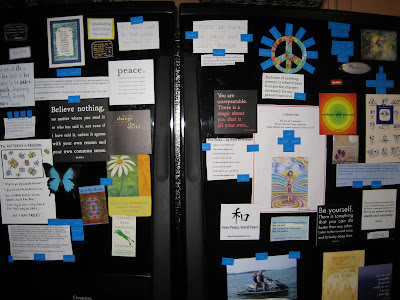I really love quotes! The front of the refrigerator is full of them, and I collect them! Here is a glance at the front of the fridge. The good thing is, when we have visitors, my quotes are always a conversation piece!